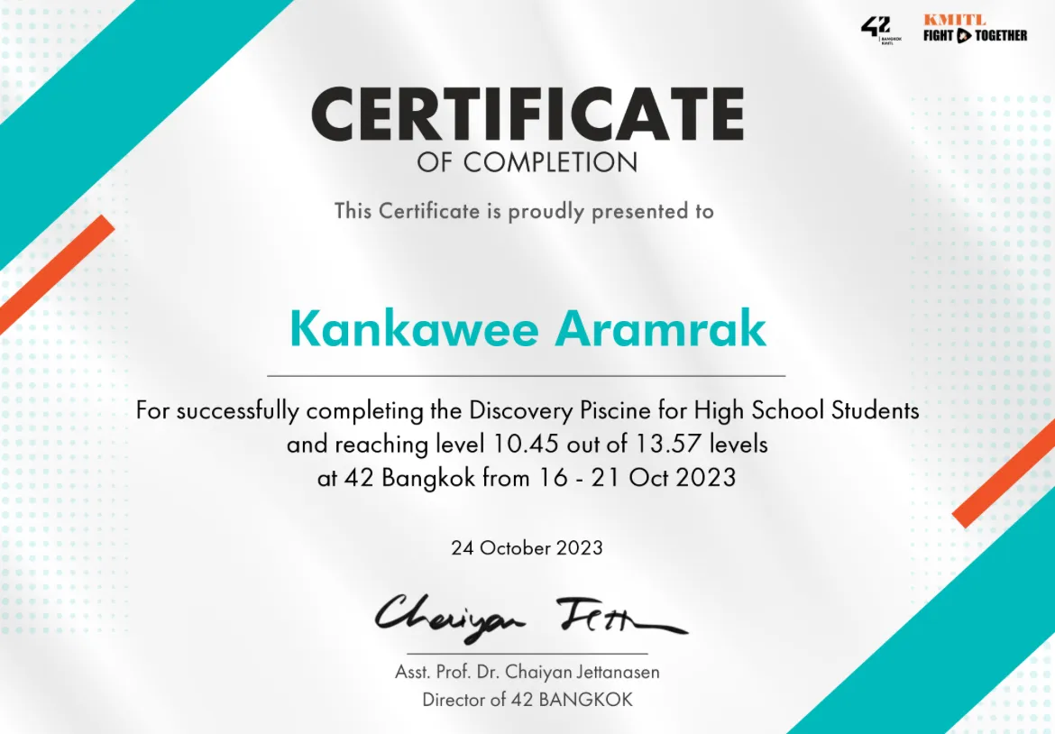 42Bangkok KMITL Discovery Piscine High School successfully #2023